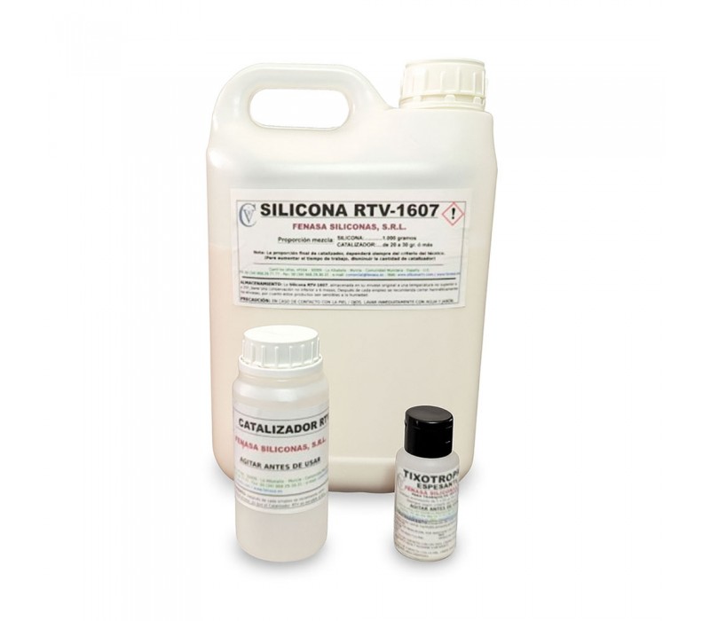 Este pack incluye 5 kilos de Silicona RTV 1607 y 60 gramos de Tixotrópico para aumentar la densidad de la mezcla.