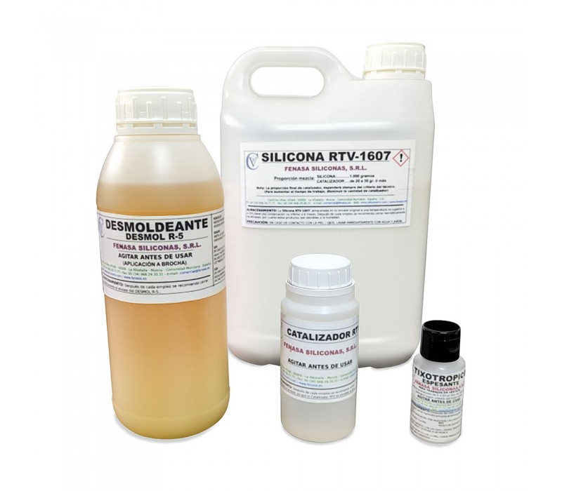 Pack económico que incluye 5 kilos de Silicona RTV 1607 y 1 litro de desmoldeante R5.
